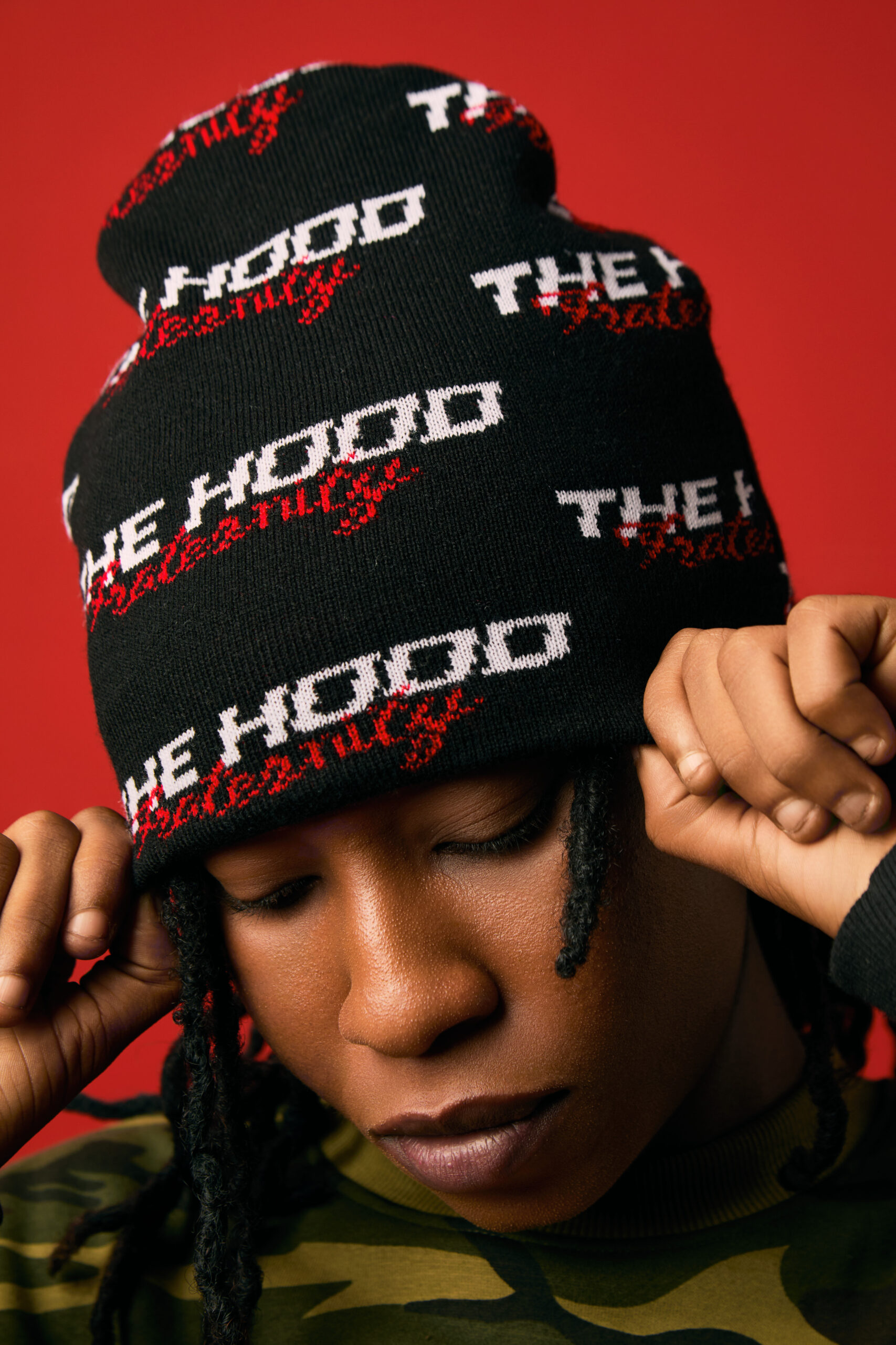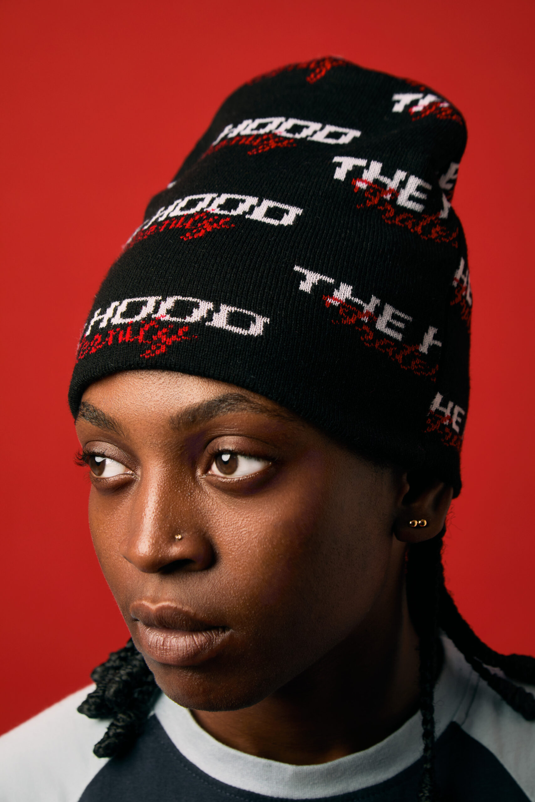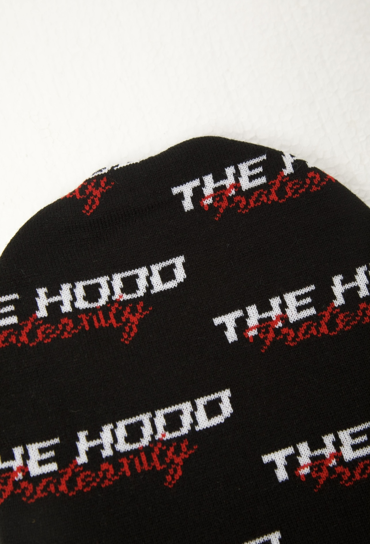 Refined streetwear at its finest. Crafted in a premium black knit with signature THE HOOD detailing in white and red, this beanie delivers understated luxury with everyday comfort. Soft, warm, and stretch-fitted for a clean silhouette.